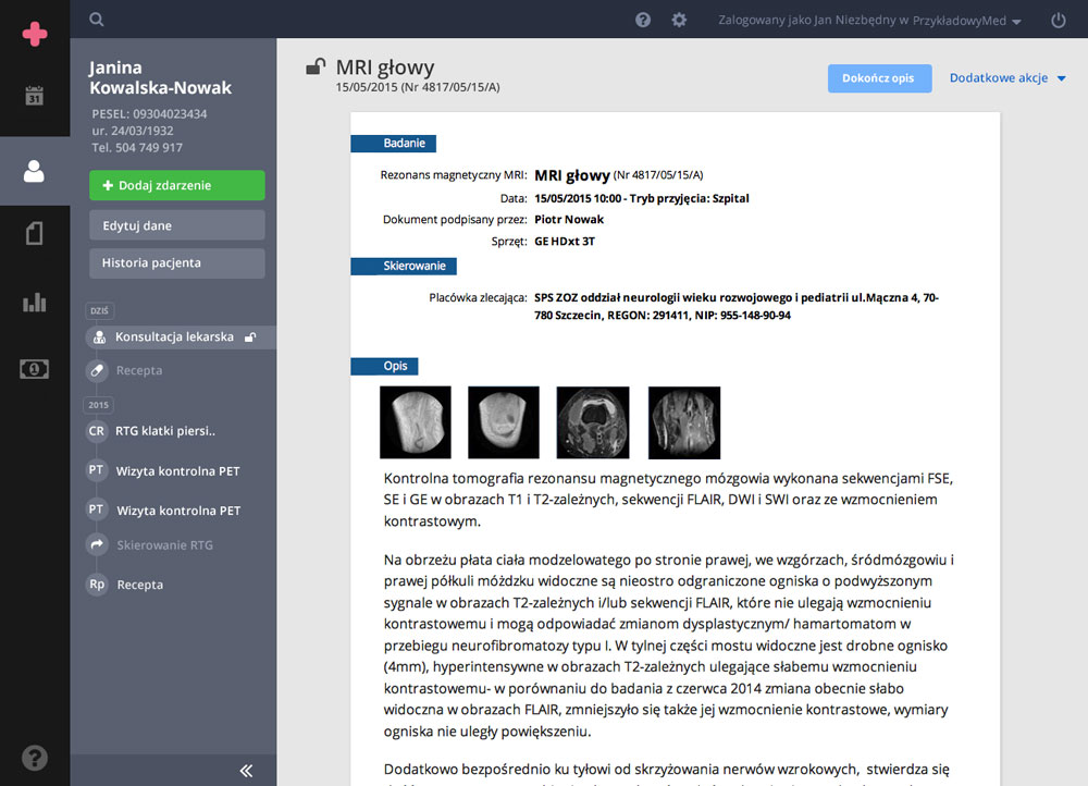 Prosta obsługa, dostępność za pomocą przeglądarki, integracje z maszynami i stacjami opisowymi, teleradiologia.